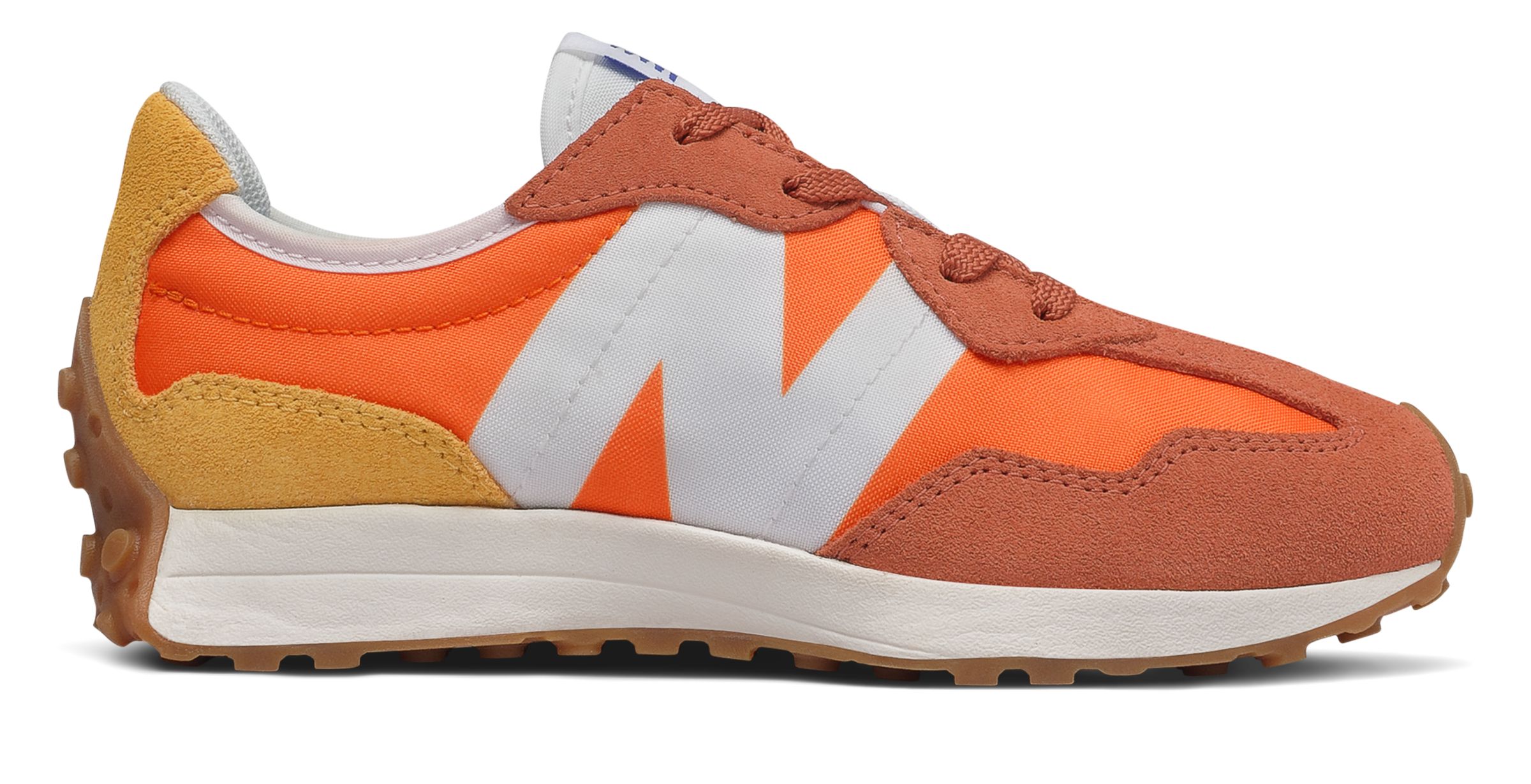 Modern style shakes hands with NB heritage in the ultra-stylish 327 for kids. Made from sturdy materials, the contemporary upper features a new oversized N logo for a bold take on classic branding.