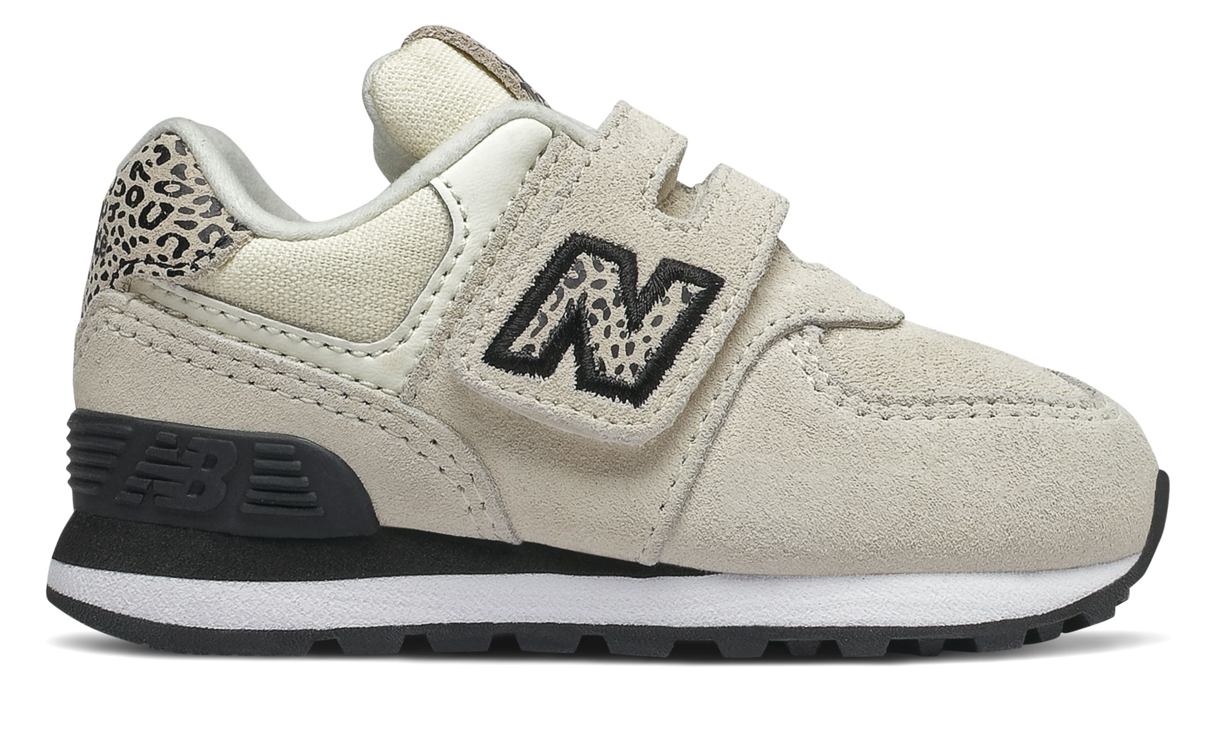 Families' active schedules call for a kids' sneaker that's stylish enough to complement any outfit and soft enough to keep feet cozy. With a cute animal print inspired by women's shoe designs, this 574 Animal Print for infants delivers iconic style in a clean and comfortable shoe. A cushioned midsole helps keep little feet feeling comfy and secure while a rubber outsole helps prevent wear-and-tear. The hook-and-loop closure strap makes it easy to get on and off little feet.