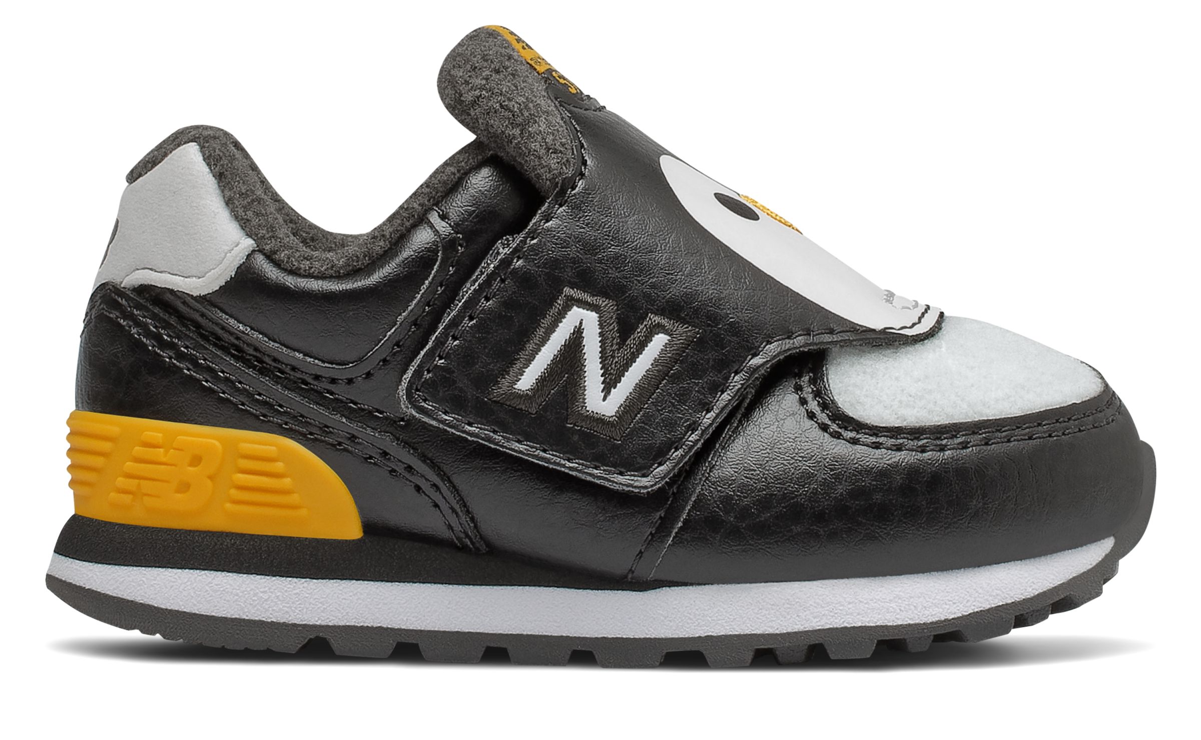 Our 574 Classic shoe ensures your little one is the most stylish tyke on the block. Featuring our classic sneaker profile, these infants' shoes have a whimsical animal design for added style from stroller to park. Built for function as much as fashion, these kicks also include a cushioned heel and midsole to support teeny steps and have a durable construction to survive daily wear and active playtime. A hook and loop closure makes these easy to get on and off.