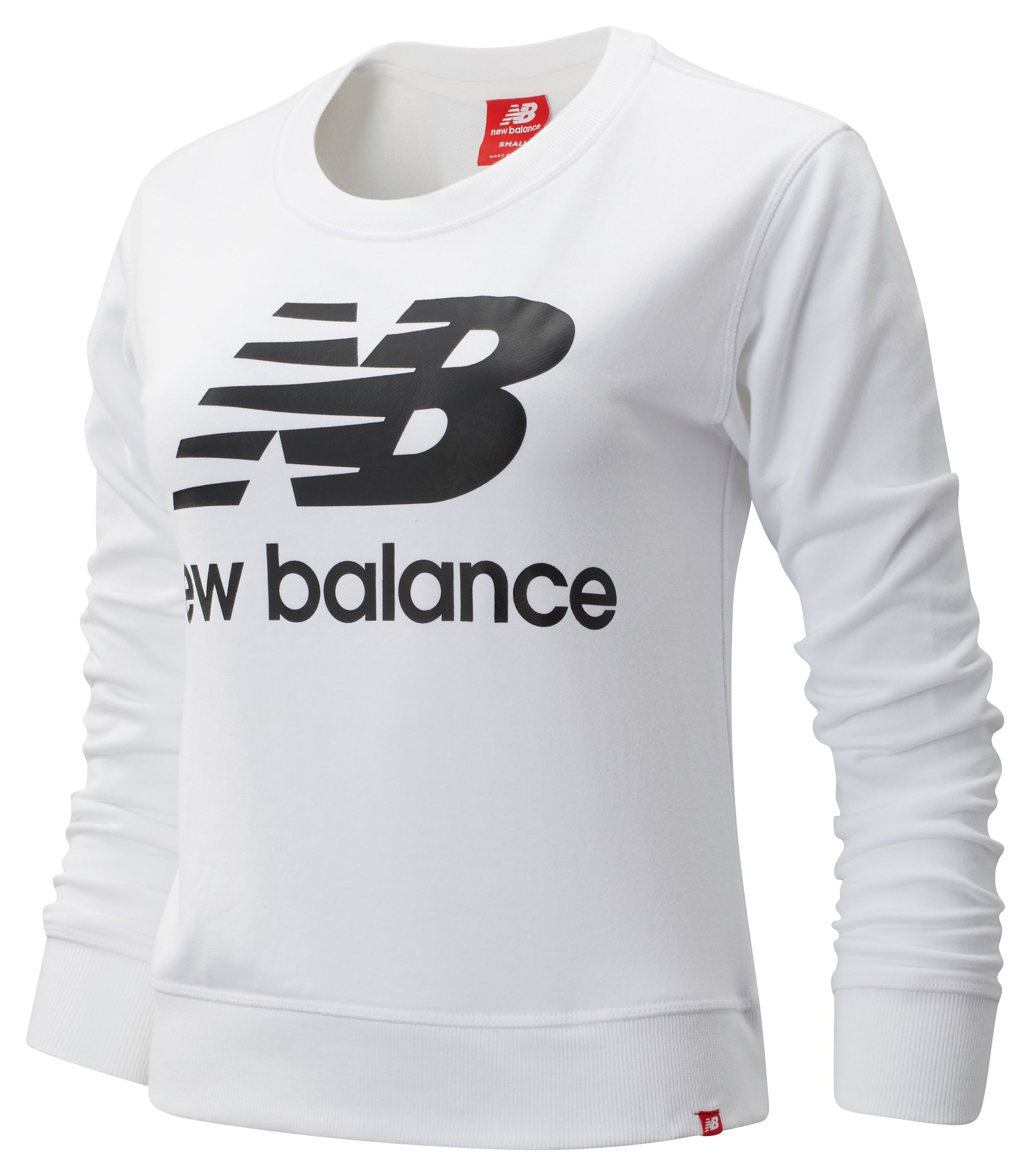The women's Essentials Crew features classic elements like rib detail at the cuffs, collar and hem. Stacked New Balance branding on the chest takes center stage without distracting from your overall vibe.