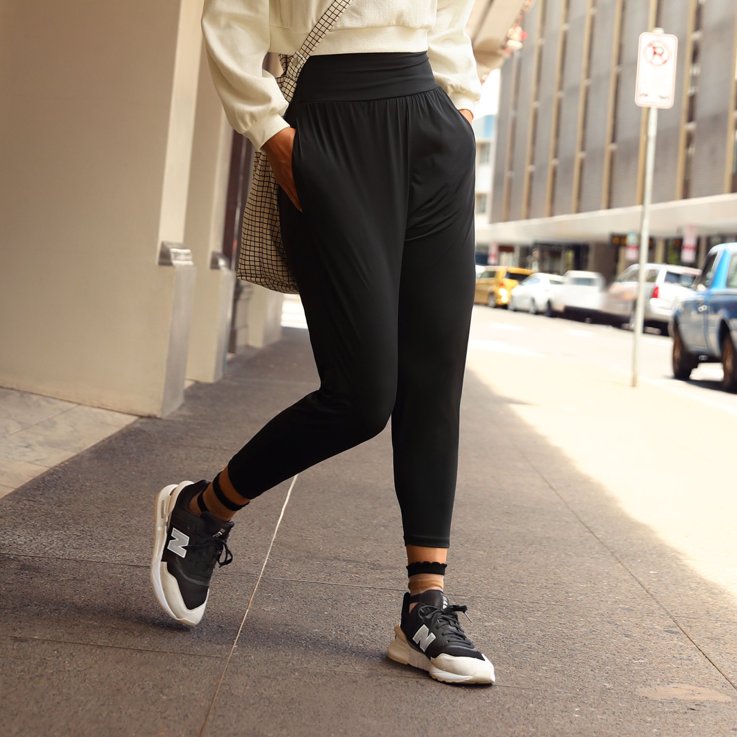 From ballet to hip-hop freestyling, dance requires careful attention to your workout attire. The Evolve Drapey Dance Pant features a 7/8 length cut with a dropped inseam and tapered leg, offering exceptional comfort and air flow while also preventing excess fabric from getting caught around your feet and legs. The side seam pockets let you store small items in these women's workout pants during class.