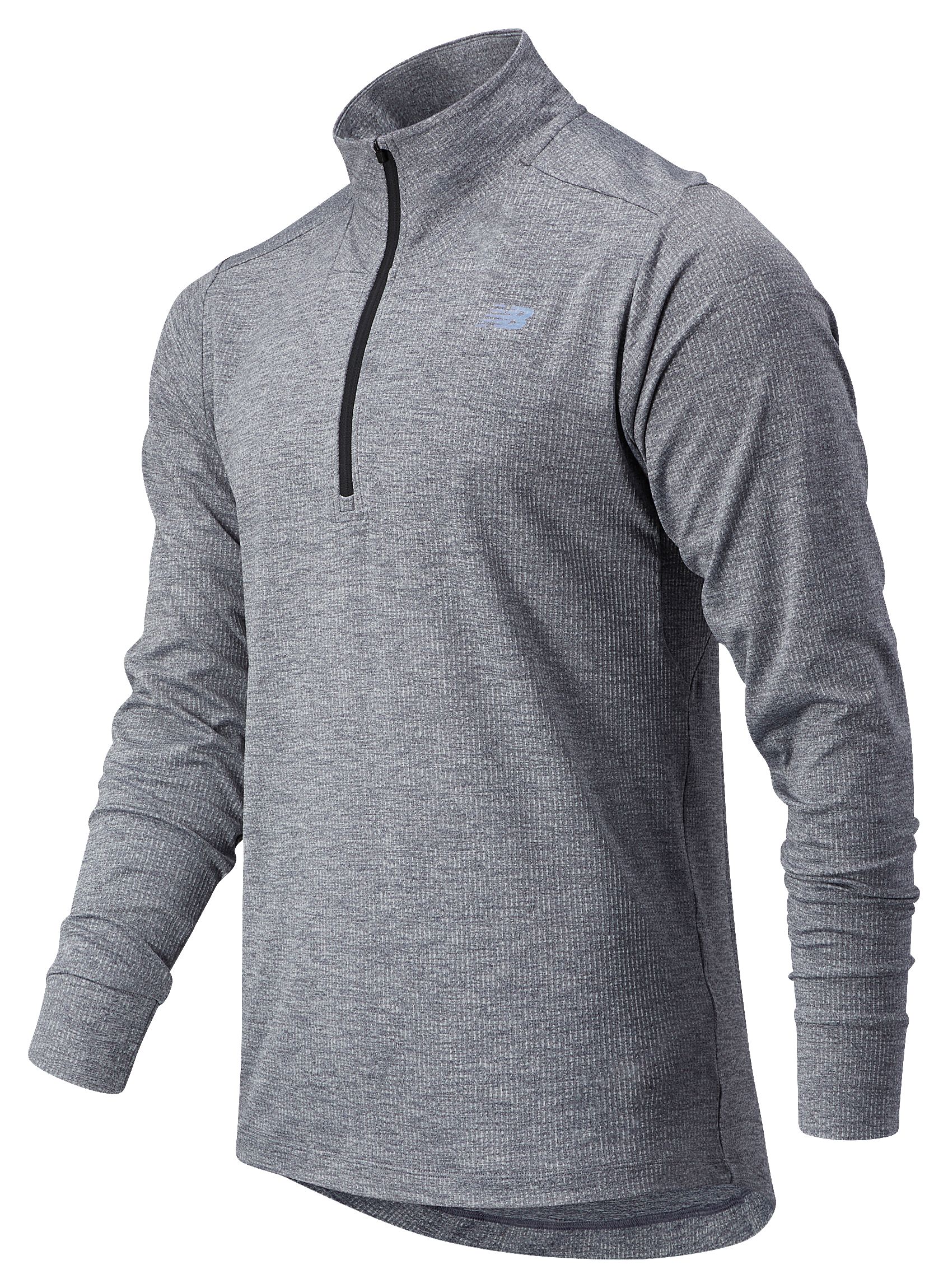 For brisk morning jogs, the Fortitech Quarter Zip offers a snug, secure fit without sacrificing warmth. This men's long sleeve shirt features NB DRY fabric to help you stay dry and comfortable, even while training in rain or snow. The ventilated arm gusset provides added air flow where you need it most, while the drop tail provides exceptional coverage without compromising your mobility.