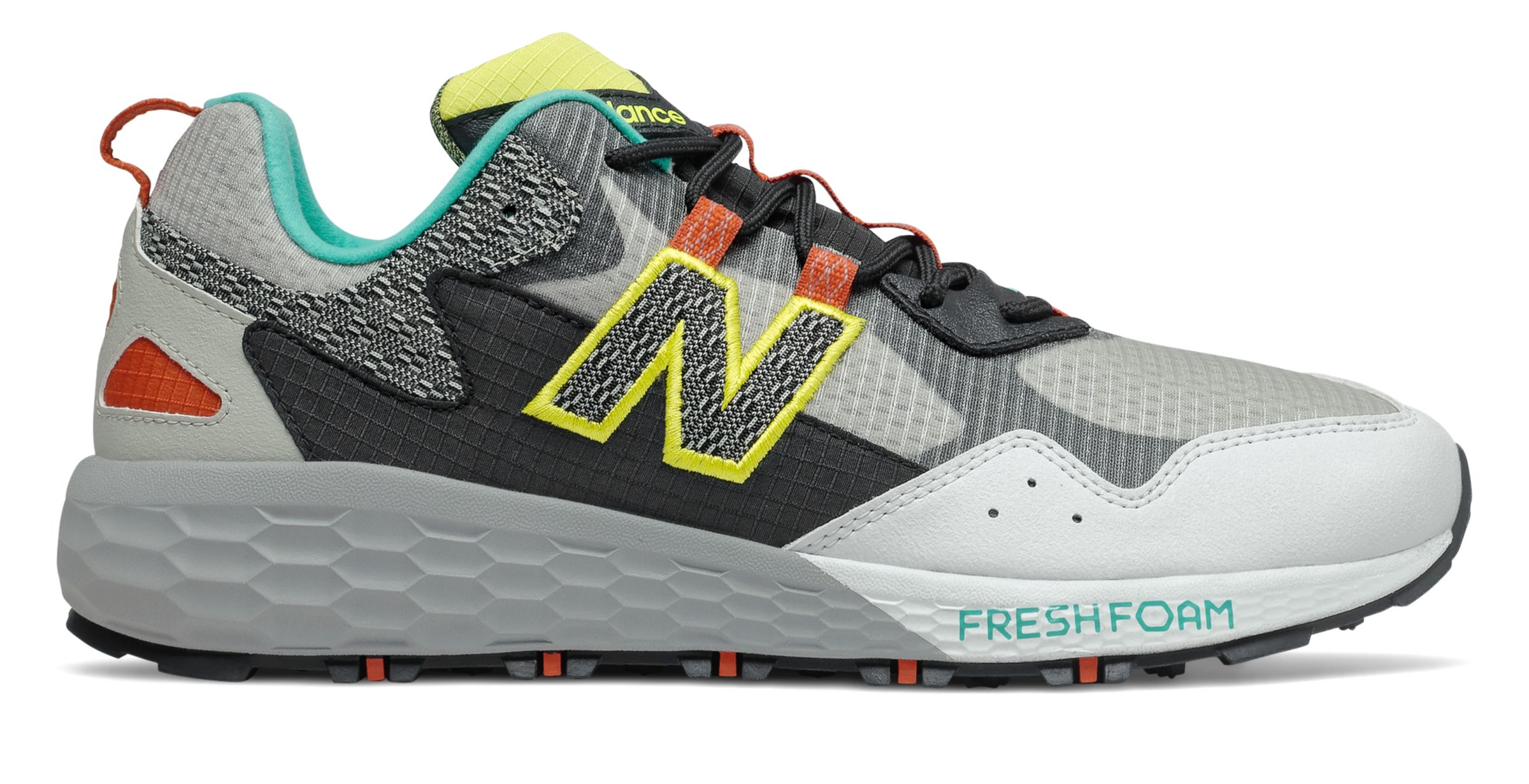 • Translucent mono mesh and webbing mixes future style with iconic New Balance trail DNA