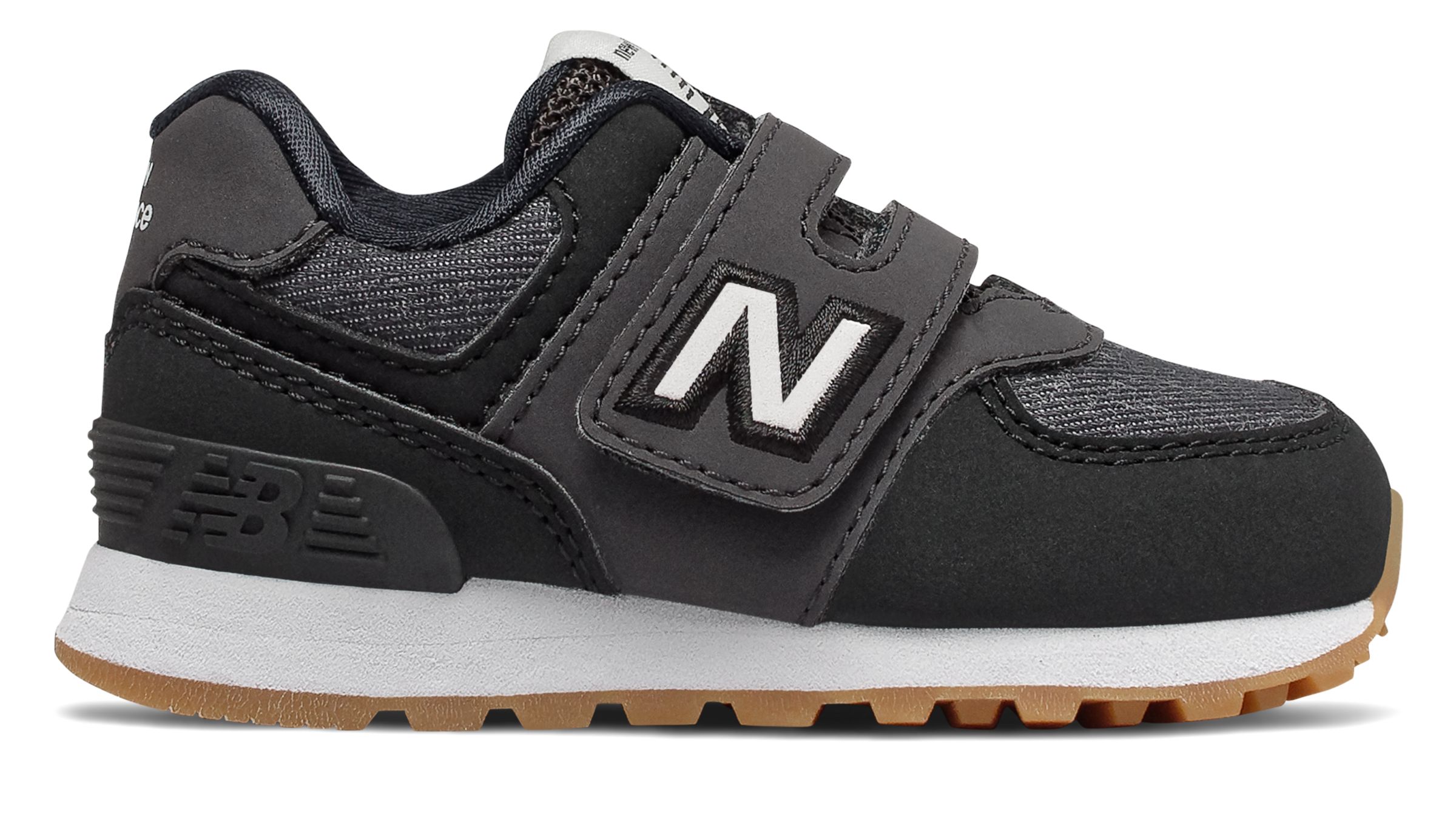 Practical and stylish, our 574 Classic kids' sneakers are designed with an EVA midsole, making your child's first steps comfortable and cushioned. The textile construction delivers a durable yet lightweight feel for all-day comfort on the playground, while the rubber outsole stands up to toddler wear-and-tear. With a hook and loop closure, these shoes provide a secure fit and easy on/off access.