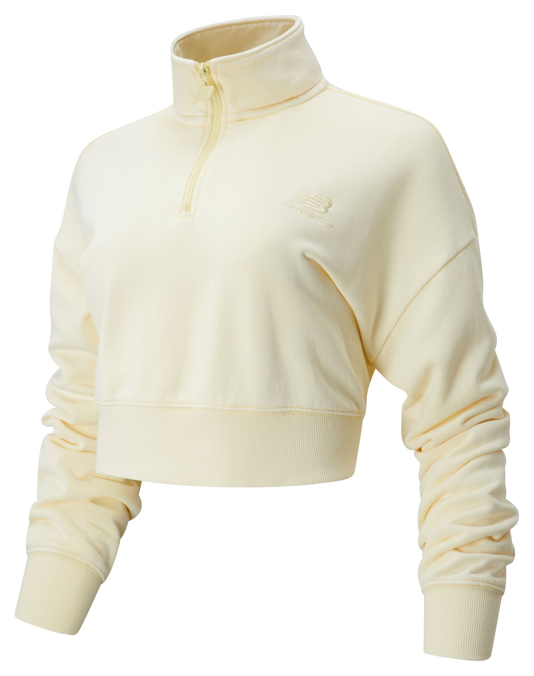 Tailored for today, the women's NB Athletics Prep 1/2 Zip Fleece Hoodie offers a retro-inspired silhouette in sunwashed colorways that give your casual look a straight-from-the-coast vibe. Soft, garment-dyed French terry fabric delivers all-day comfort, while an embroidered chest logo adds a premium touch. The oversized fit offers a laid-back feel, while the half zip opens to welcome a fresh breeze.