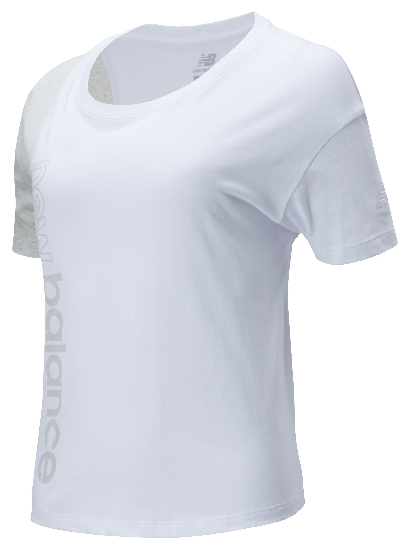 Anything but a basic, the women's NB Athletics Short Sleeve Blocked T-Shirt features asymmetrical color blocking with vertical branding to elevate your everyday, sporty look. A stacked logo on the left sleeve doubles down on classic branding.