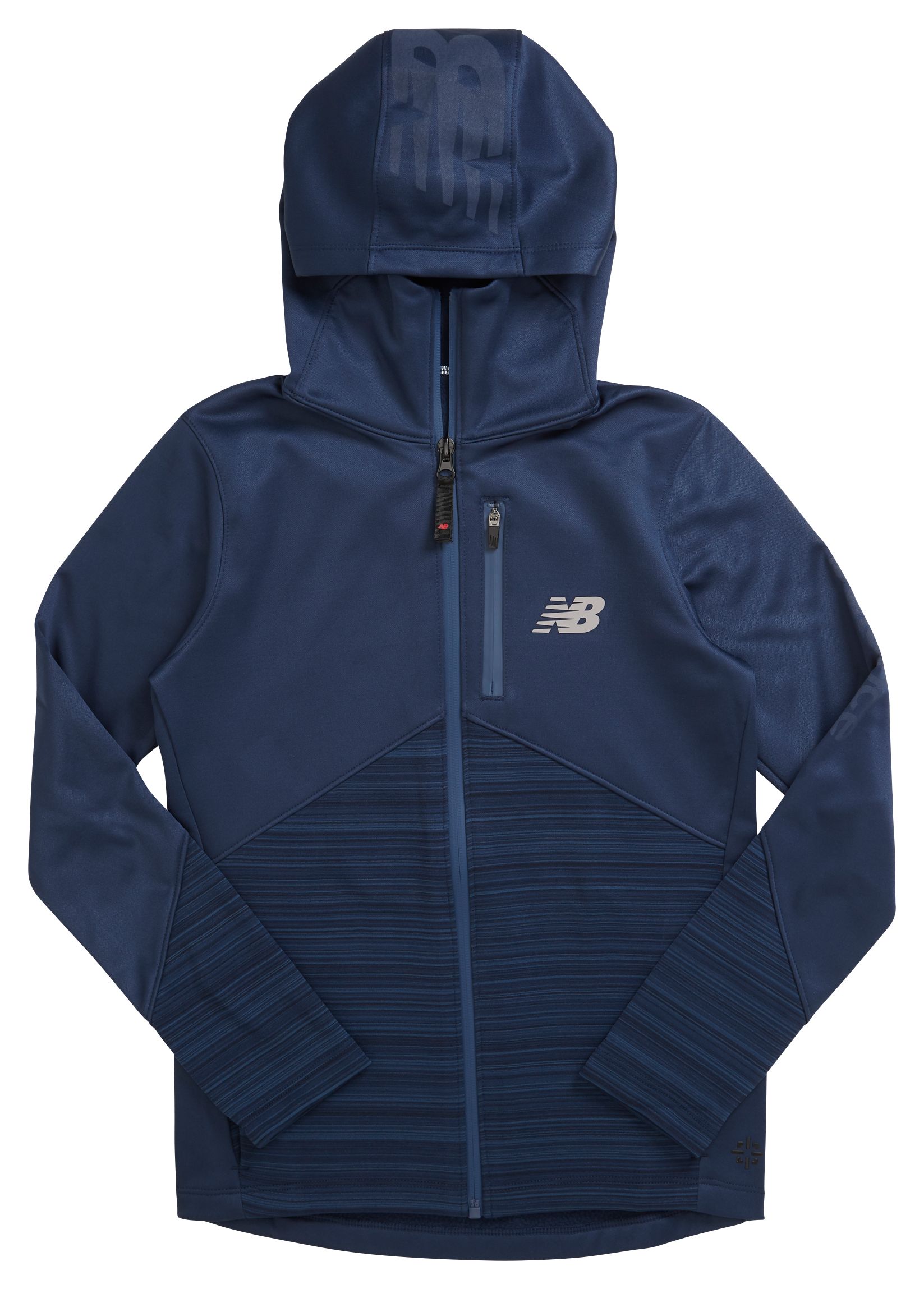 • Linear "New Balance" print to sleeve and "NB" to hood