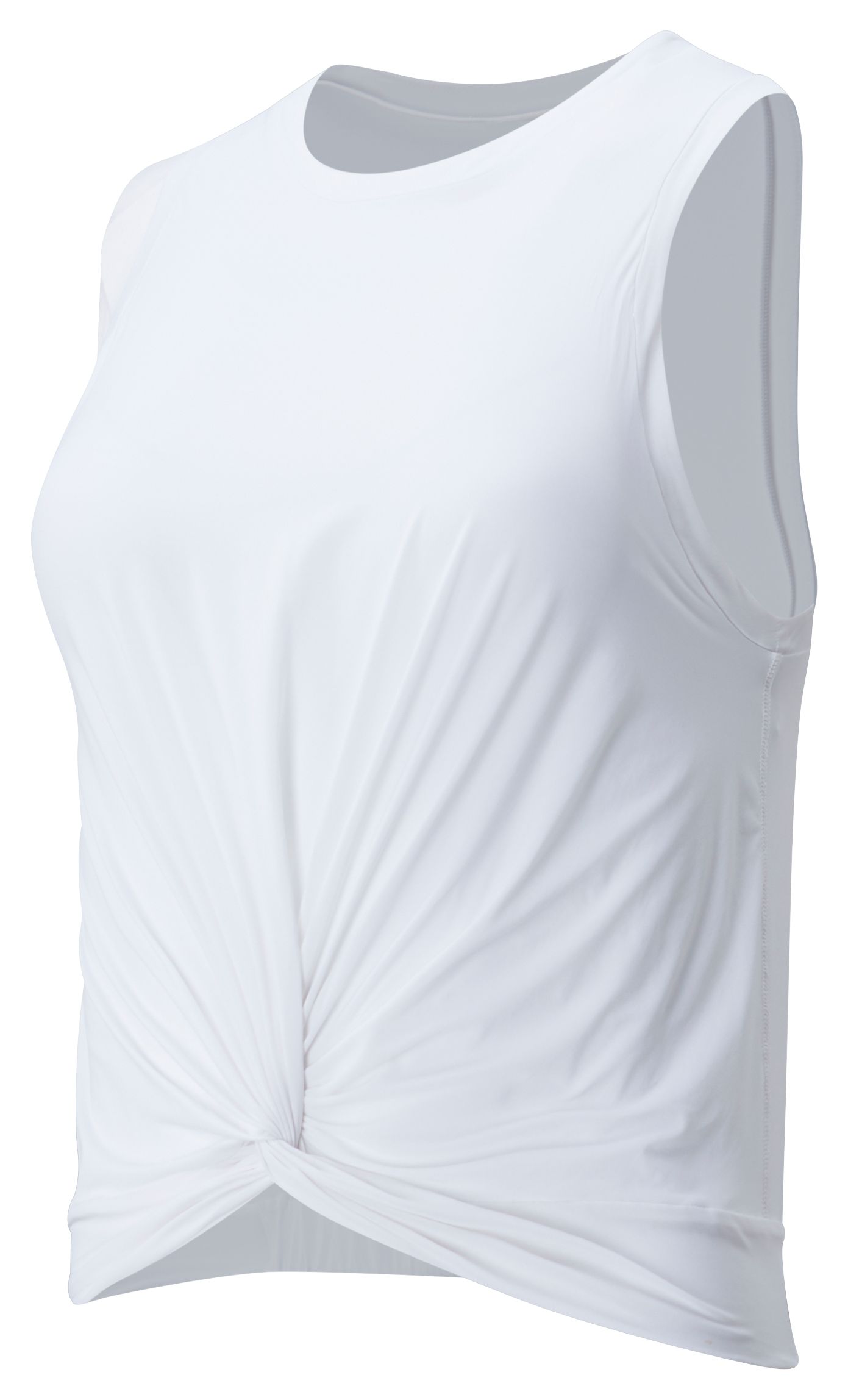 Brighten up your workout in our Summer Somewhere Feel the Cool Tank. As part of our Feel the Cool Summer Pack, this performance top features a NB DRY-treated fabric that wicks away moisture to help deliver long-haul comfort. Designed with front knot detailing and elastic shirring at the beck hem, this crop top brings style to your workout look. This athletic tank is made with our superior Feel the Cool fabric that dries fast and feels cool on the skin.