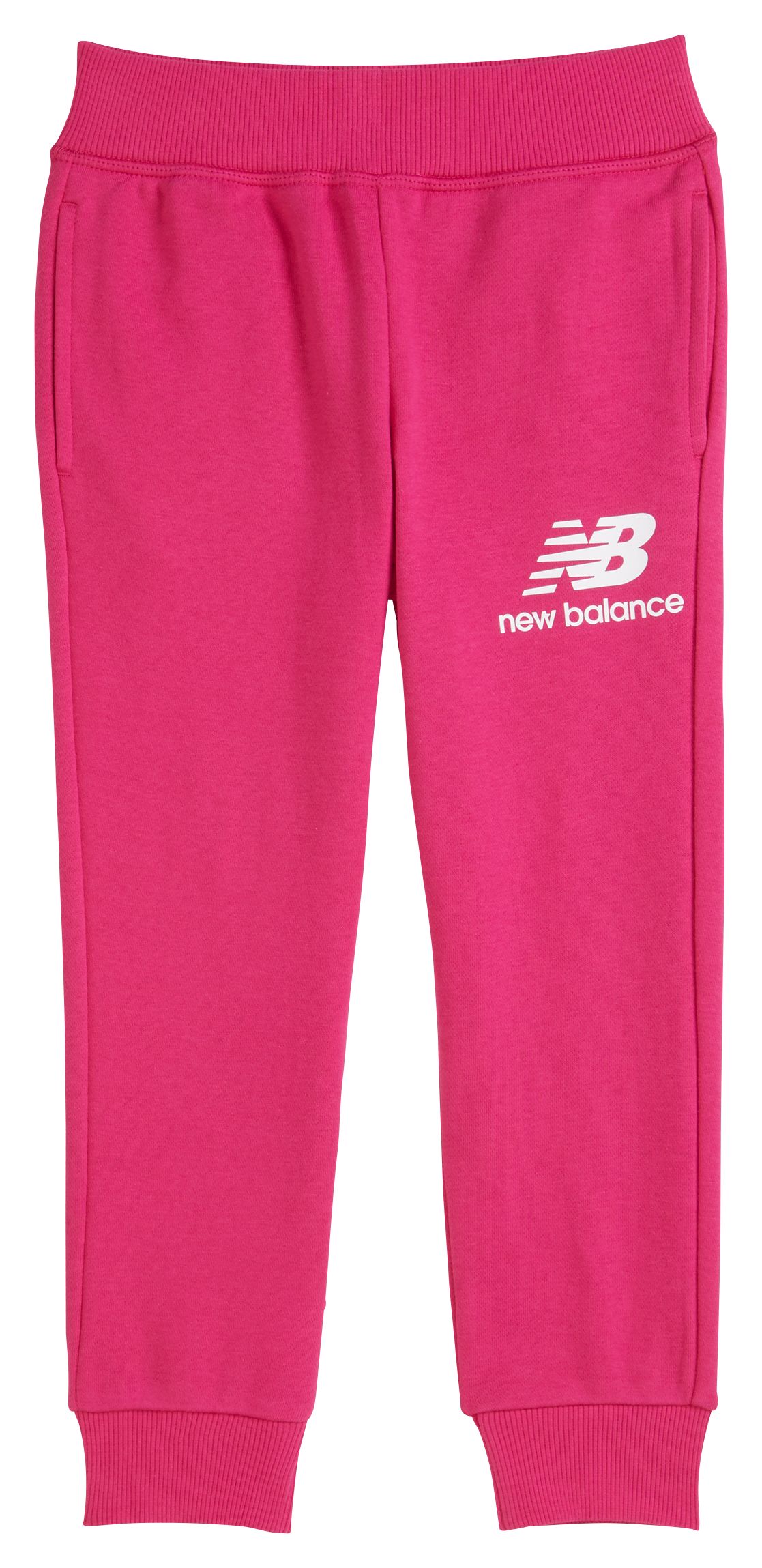 Your active kid can pull on style and comfort with our Essentials Stacked Logo Sweatpant. This cozy pant offers an athletic fit and a cool stacked NB logo graphic on the leg for heritage style. The drawcord waistband adjusts for a custom-like fit. A patch on back pocket and rib knit cuffs round out this busy-day must-have. This kids' pant is an easy go-to for school, play and beyond. Easy access open hand pockets offer a cozy touch.